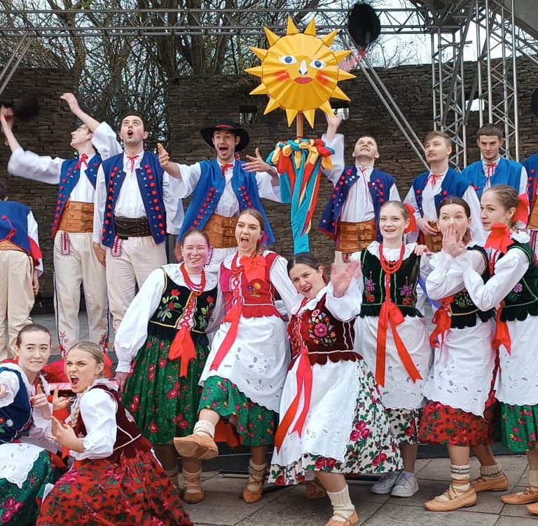 We had a great time performing our revamped version of Żywiec to a standing ovation from the crowd, I'm sure they were all impressed by the girls beautiful singing and the tricks that the guys were pulling off (even on that uneven concrete!) We also watched other communities from Slovakia, Latvia, Czechia, Ukraine and Moldova perform their dances before a singing procession took the effigy of Marzanna to the river and drowned it in the hope of warm weather and longer days (and some more performance!)