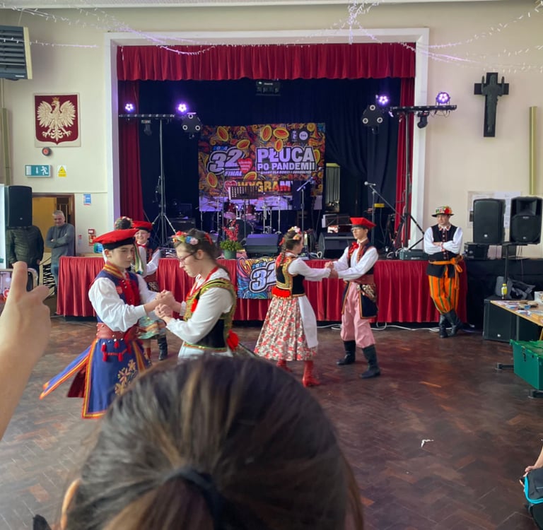 We performed for the great orchestra of Christmas help, which is one of the biggest charities in Poland and holds event worldwide on the last weekend in January. We performed a wonderful Kujawiak Oberek with new pairs whilst the middle group 'Szarotka' debuted its Krakowiak Wschodni ! Well done to the event organisers and all involved !!